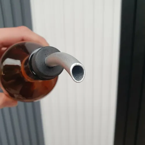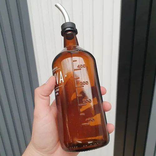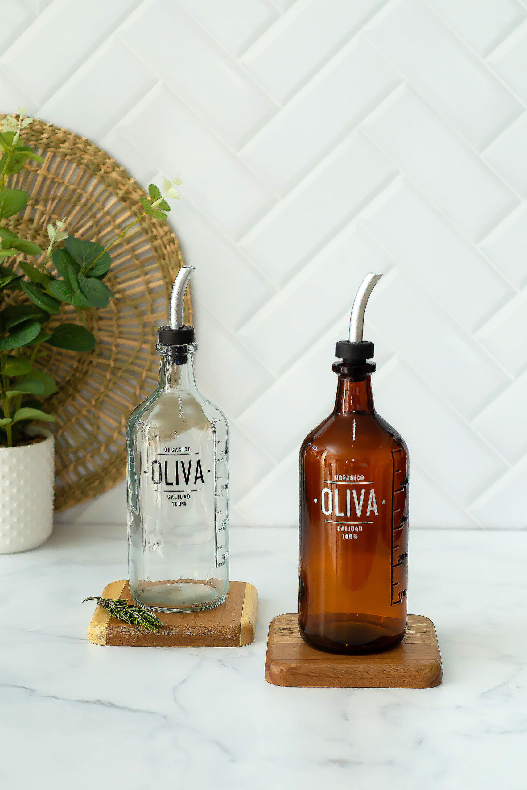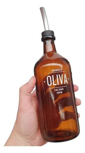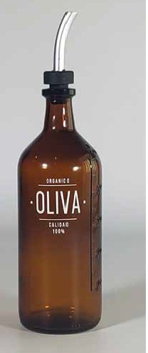 Dispenser de aceite Oliva color Ambar, con exelente pico dosificador que permite tener siempre limpio el vidrio del dispenser.