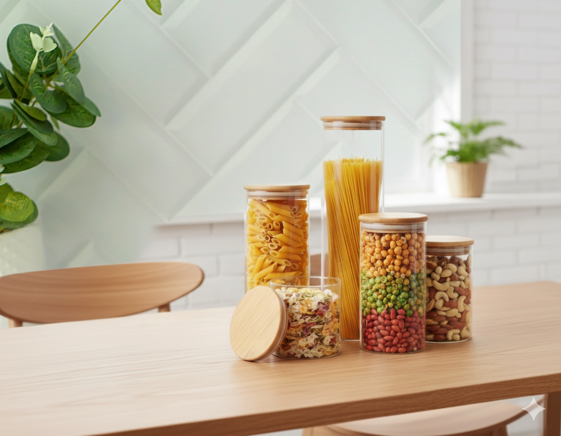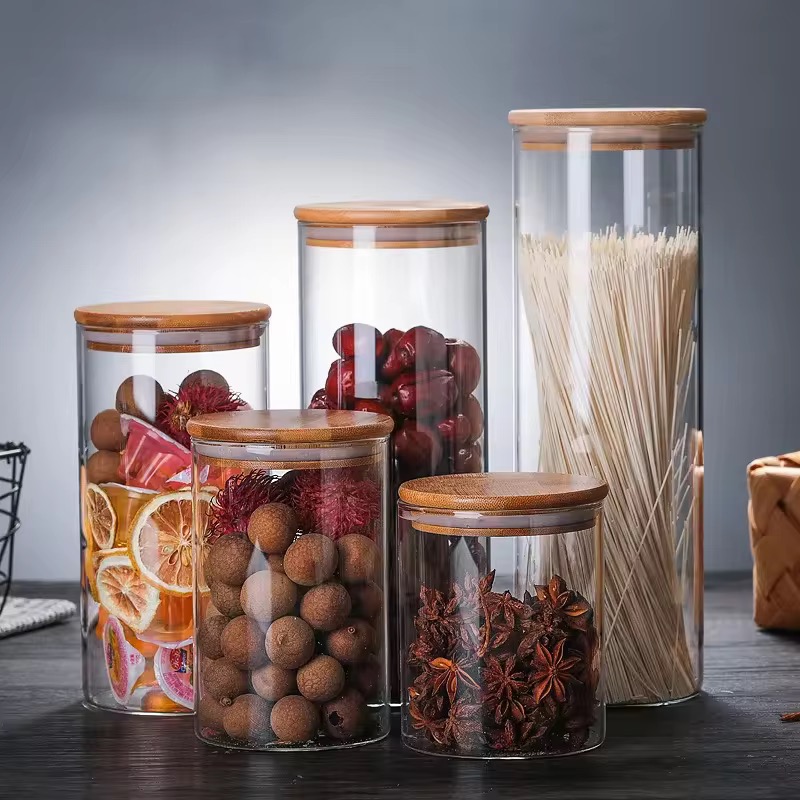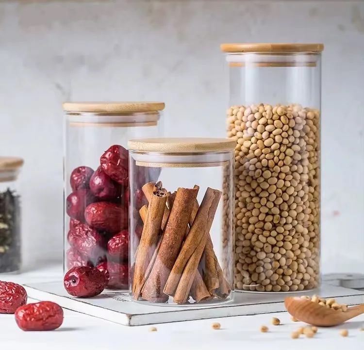 Frasco hermetico de vidrio con tapa de bambu