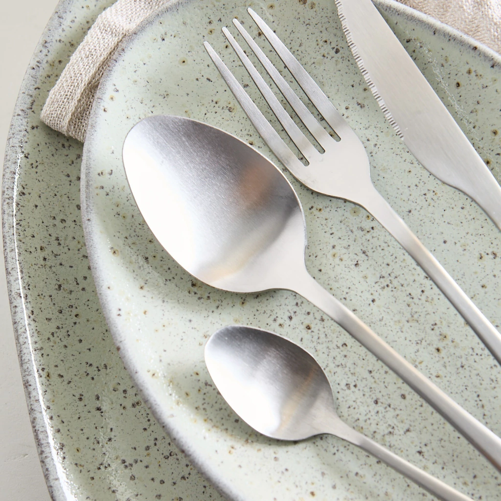 Incluye 4 tenedores, 4 cuchillos, 4 cucharas y 4 cucharitas.